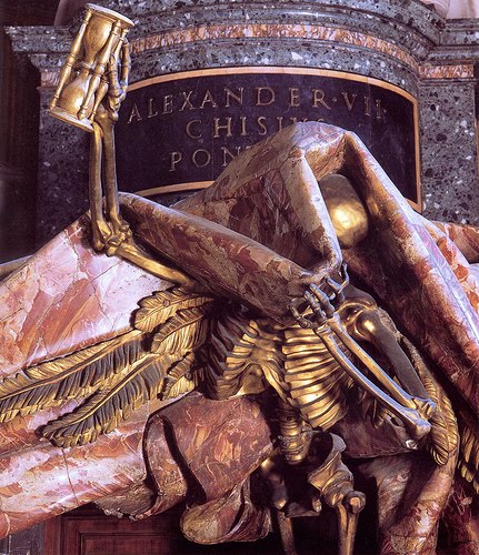 Tic, tac, tic, tac, tic, tac… Siempre el reloj para recordarnos que el tiempo nunca se detiene y cada vez nos queda menos, menos, menos, menos, menos… Como ese esqueleto que sale bajo la tumba de Alejandro VII mostrándonos un reloj de arena que lleva en la mano, para recordarnos que nuestro turno también está cerca y que ninguno tenemos ni idea de cuántos granos nos quedan.
