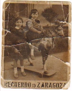 No es que un caballito sea más pequeño, las diferencias son más sutiles. Pensadlo un poco, puede haber caballos de 5 centímetros y caballitos como éste, que tiene un pelín más de un metro de altura. Pero los caballos son serios y formales, están metidos en su papel, y los monta un santo, un jefe indio, un rey… mientras que los caballitos son divertidos, y normalmente los montan niños o adultos que son como niños, que viene a ser lo mismo. Hoy la cosa va de los segundos, y concretamente de uno de cartón. El que Angel Cordero Gracia plantó junto a la Lonja allá por 1925 y no movió hasta 53 años después. Corrió mucha agua debajo del Puente de Piedra en todos aquellos años, y él hizo fotografías a miles de niños que pasaron por allí.