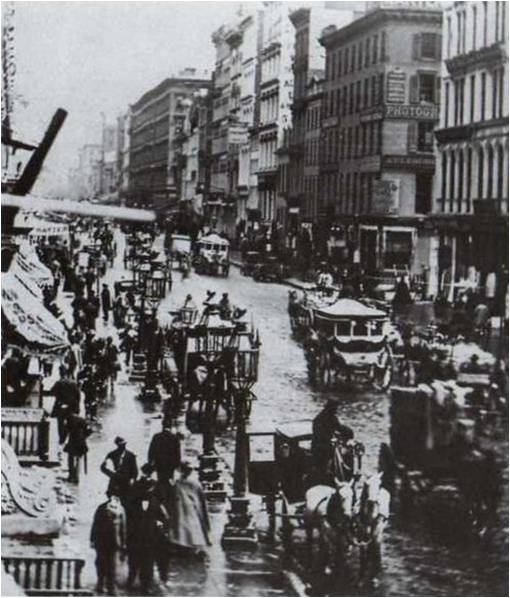 La familia Straus se fue a vivir al Viejo Sur, en unos años que todos conocemos gracias a esa monumental película que es “Lo que el viento se llevó”. En la foto podemos ver a Scarlet O’Hara rodeada de heridos en la estación de Atlanta, la capital de Georgia, el estado en el que los Straus abrieron su primer almacén (un “general store” de aquellos que se veían en las películas de vaqueros, en el que se vendía de todo). Eso sí, para bien y para mal les pilló la guerra. ¿Para bien? Pues sí, también para bien, porque después de la guerra vino la reconstrucción y con ella la posibilidad de crear enormes fortunas. Que fue precisamente lo que hicieron, aunque para ello se tuvieron que marchar a… ¡¡¡Nueva York!!!
