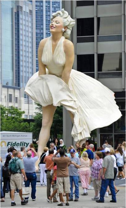 Hasta lo más maravilloso puede convertirse en vulgar. No hay más que ver la escultura que han colocado hace unas semanas en Chicago. De la fina (a veces no tan fina, la verdad) ironía de Billy Wilder no queda nada en esos paseantes que se meten entre las piernas para hacerle una foto a las bragas (nunca diré la cursilería esa de braguitas, me niego) de la escultura. Pero, ¿qué más da? Ahí está la película para recordar ese momento una y otra vez, una y otra vez, una y otra vez…