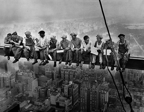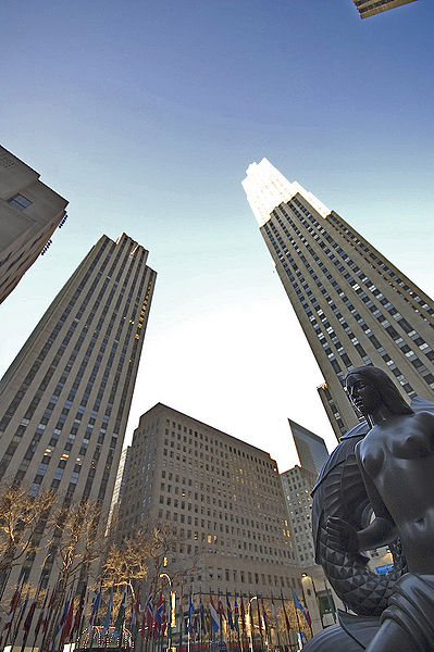 Seguro que conocéis esta foto, la pesadilla de cualquiera que se dedique a la prevención de riesgos laborales y todas esas cosas. Pues bien, fue tomada en 1932, durante la construcción del Rockefeller Center, el proyecto privado más grande (¿qué os decía yo?) construido en el siglo XX. Los Rockefeller, que se habían forrado con el petróleo, plantearon un enorme complejo de edificios para oficinas, centro comercial y de ocio en pleno corazón de Manhattan. Llegó el crack del 29 pero ellos siguieron adelante, construyendo a lo largo de los años 30 un complejo impresionante, de lo más espectacular de Nueva York. Hoy se puede subir a la terraza del rascacielos que veis en esta foto (y que para mí es el más elegante de la ciudad), conocido como el edificio General Electric.