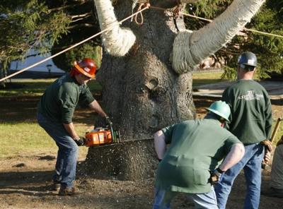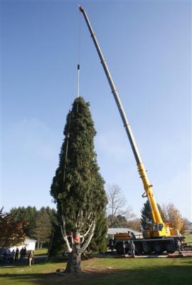A lo mejor nosotros, con nuestro complejo de europeos, pensamos que 78 años no son nada, y que los americanos no necesitan mucho para convertir algo en una tradición “de toda la vida”. Pobrecillos, no tienen historia, y todas esas cosas que tanto nos gusta decir. Pues bien: nuestra multitudinaria Ofrenda de Flores, absolutamente tradicional, entrañable y muchísimas cosas más… aún no ha llegado a los sesenta, así que esta vez también ellos se llevan el “más” (más antiguo, pero en cuanto a la gente que participa… eso habría que verlo). Eso sí, lo que más les preocupa es que su árbol sea el más alto, y para eso organizan toda una operación de búsqueda hasta que lo encuentran.