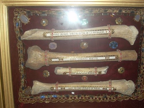 Estamos en Dijon (Francia), y el hueso de San Vicente, perfectamente etiquetado, es el segundo empezando por arriba