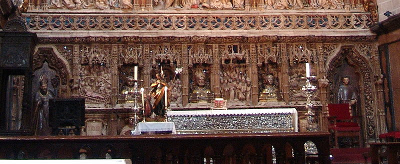 En la parte de abajo del retablo de la Seo hay tres espectaculares bustos-relicarios hechos en los talleres de Avignon, donde estaba en aquel momento la sede del papado