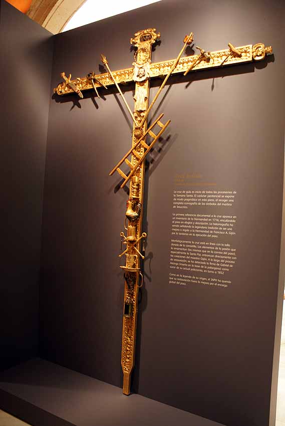 A los pies de Cristo, en el suelo, hay una túnica roja, y sobre ella los dados. Podríamos ver montones de imágenes más en las que aparecen (por cierto, dados ya tenían los romanos, incluso trucados), pero sólo os pongo otro: la cruz de guía de la Hermandad del Gran Poder, en Sevilla: